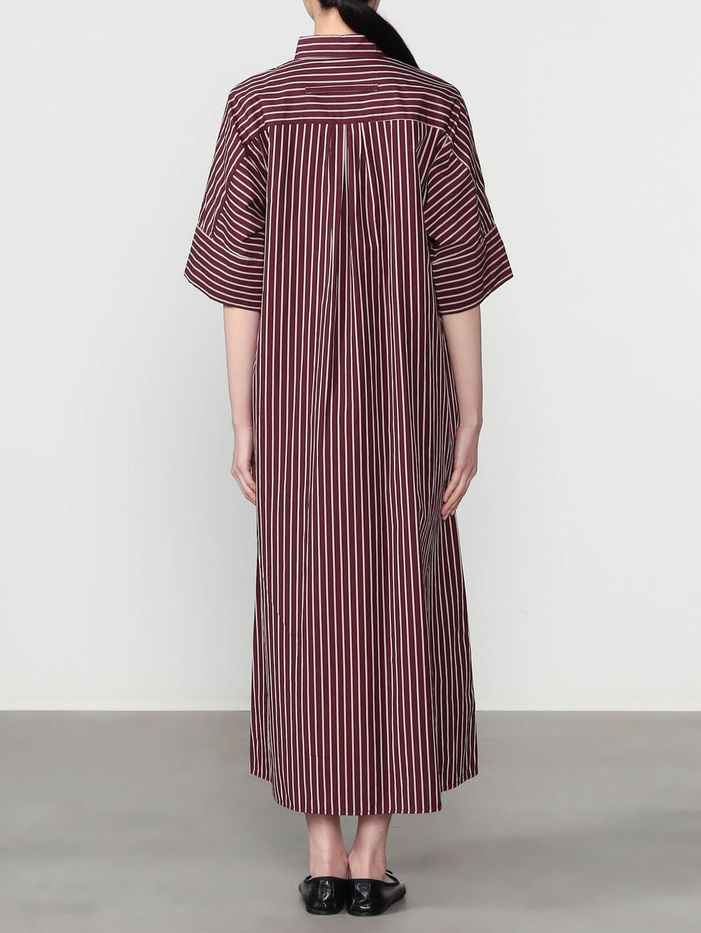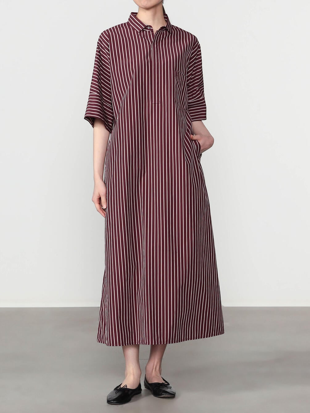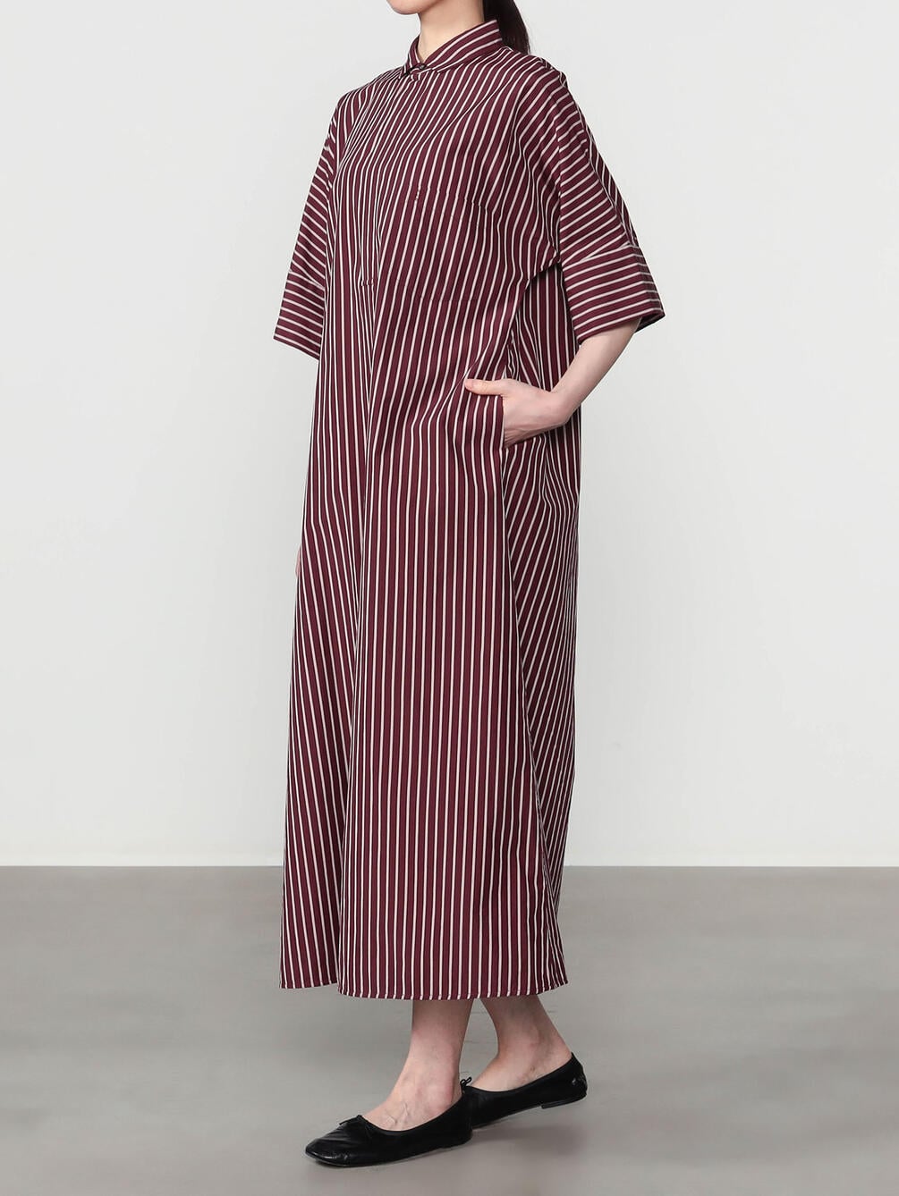 - 立体的なシルエットの半袖シャツワンピース