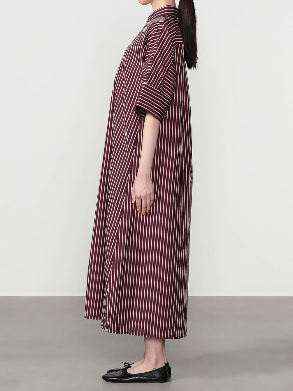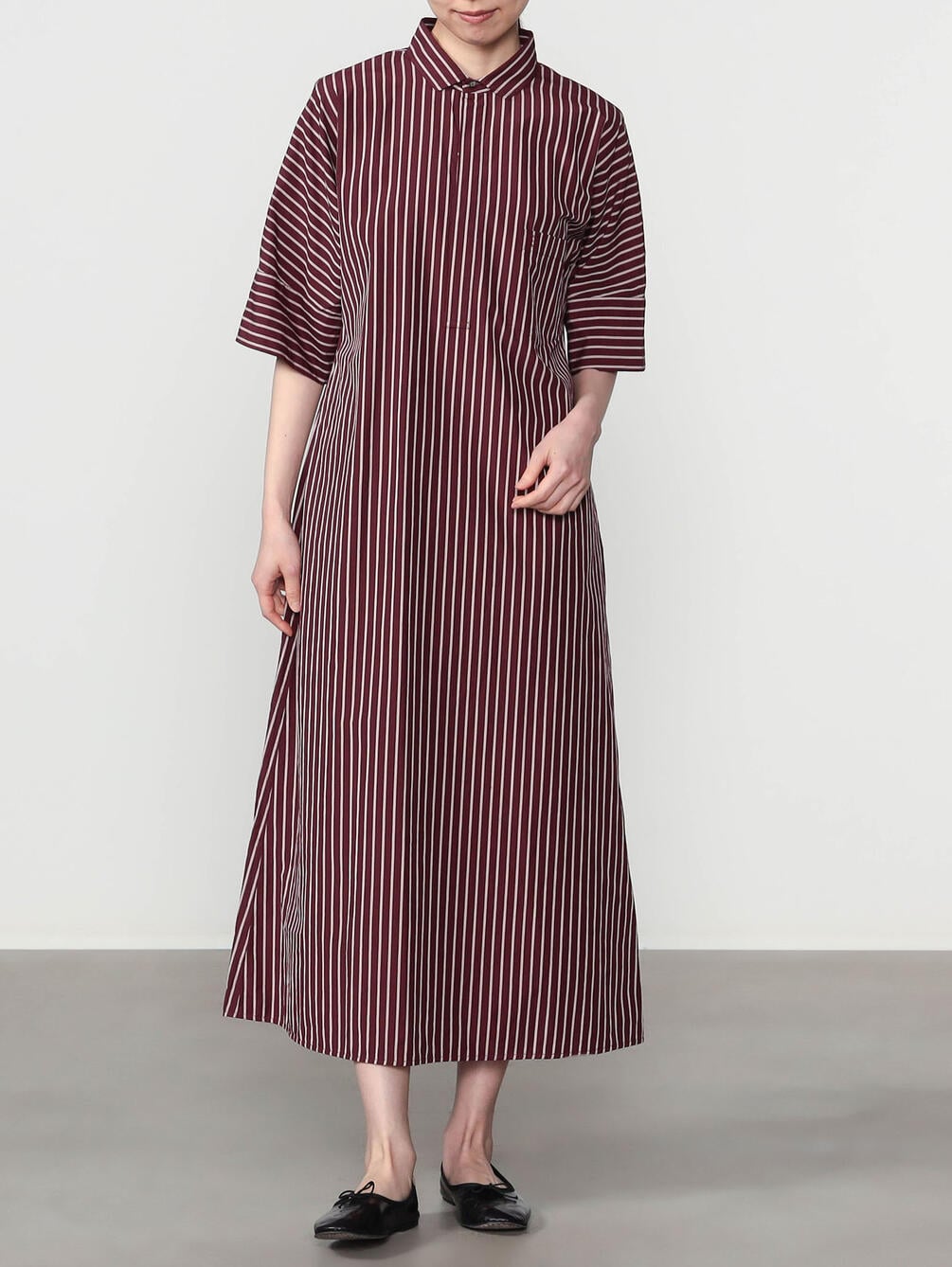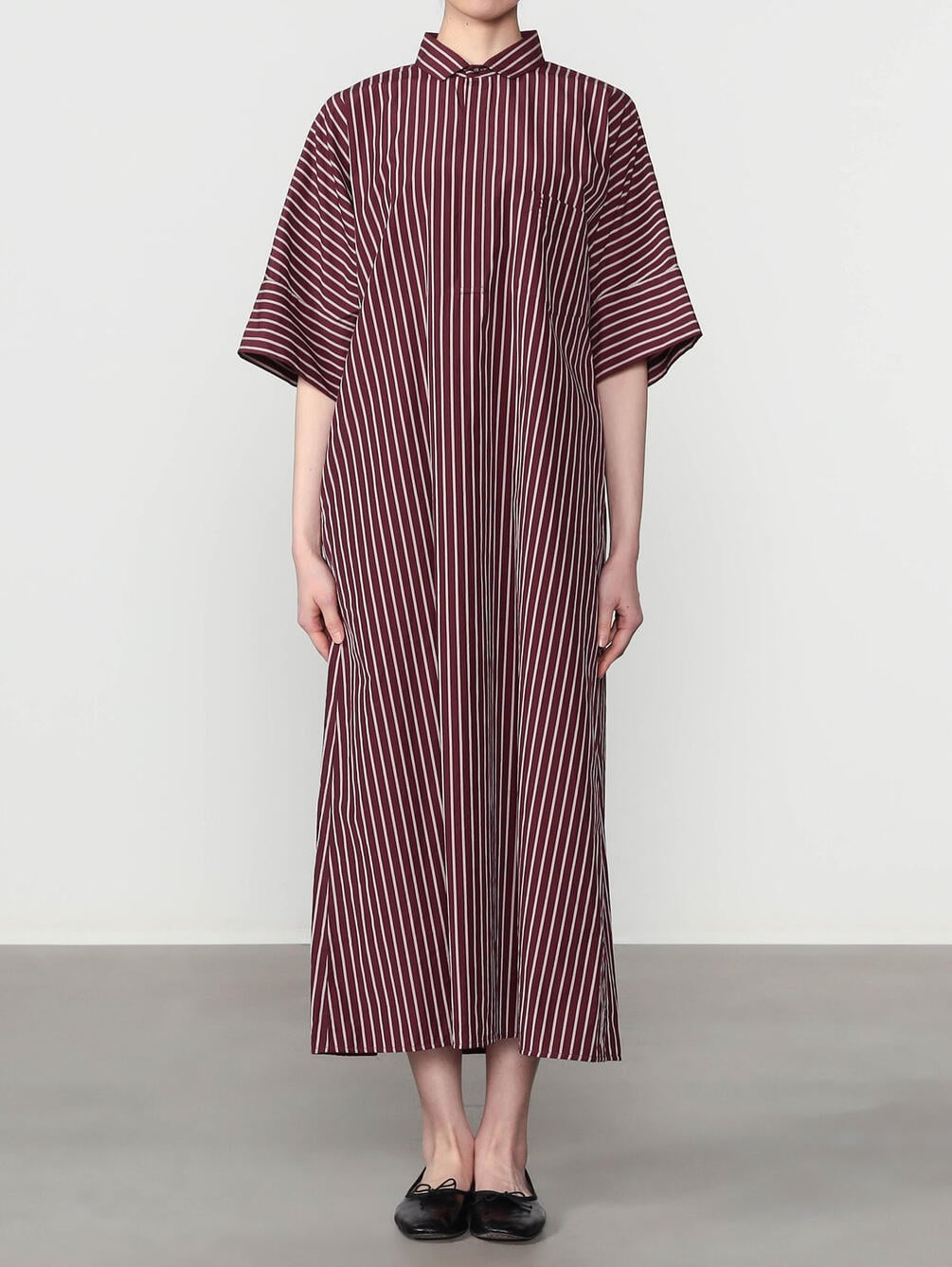 - 立体的なシルエットの半袖シャツワンピース