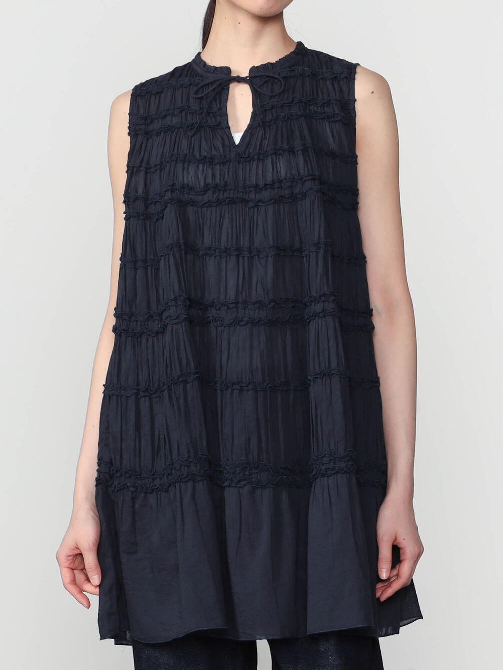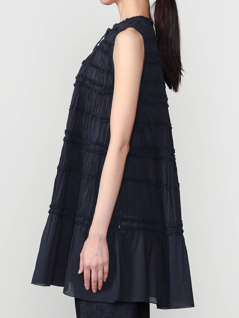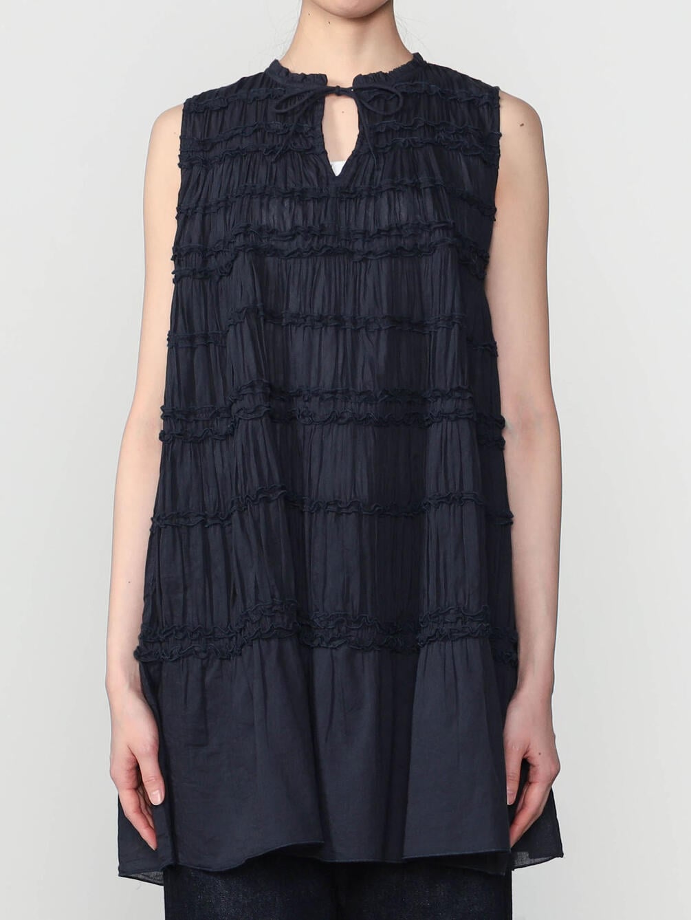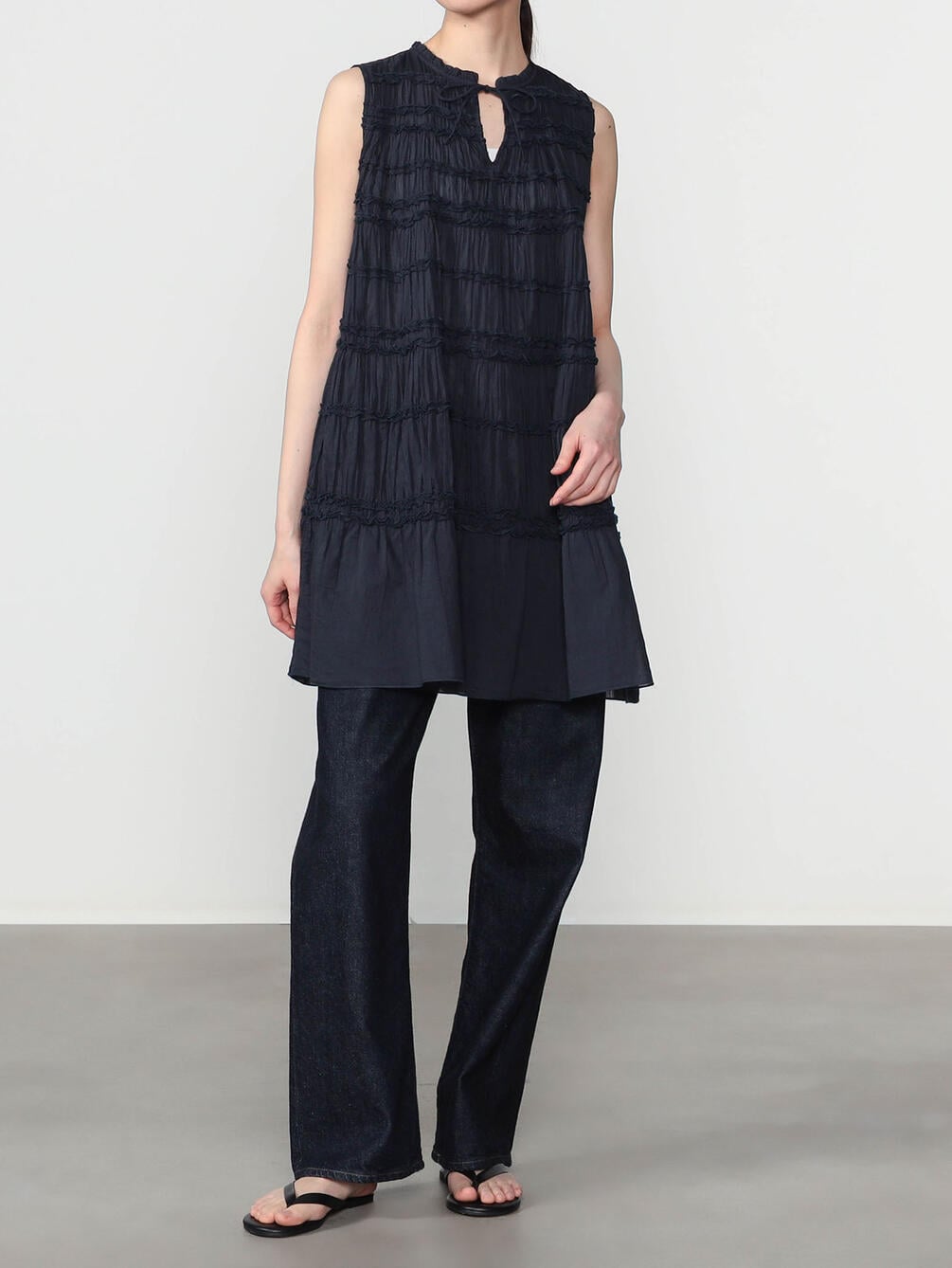 - 寄せ集めたギャザーにフリルを配したデザイン