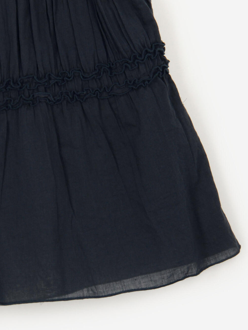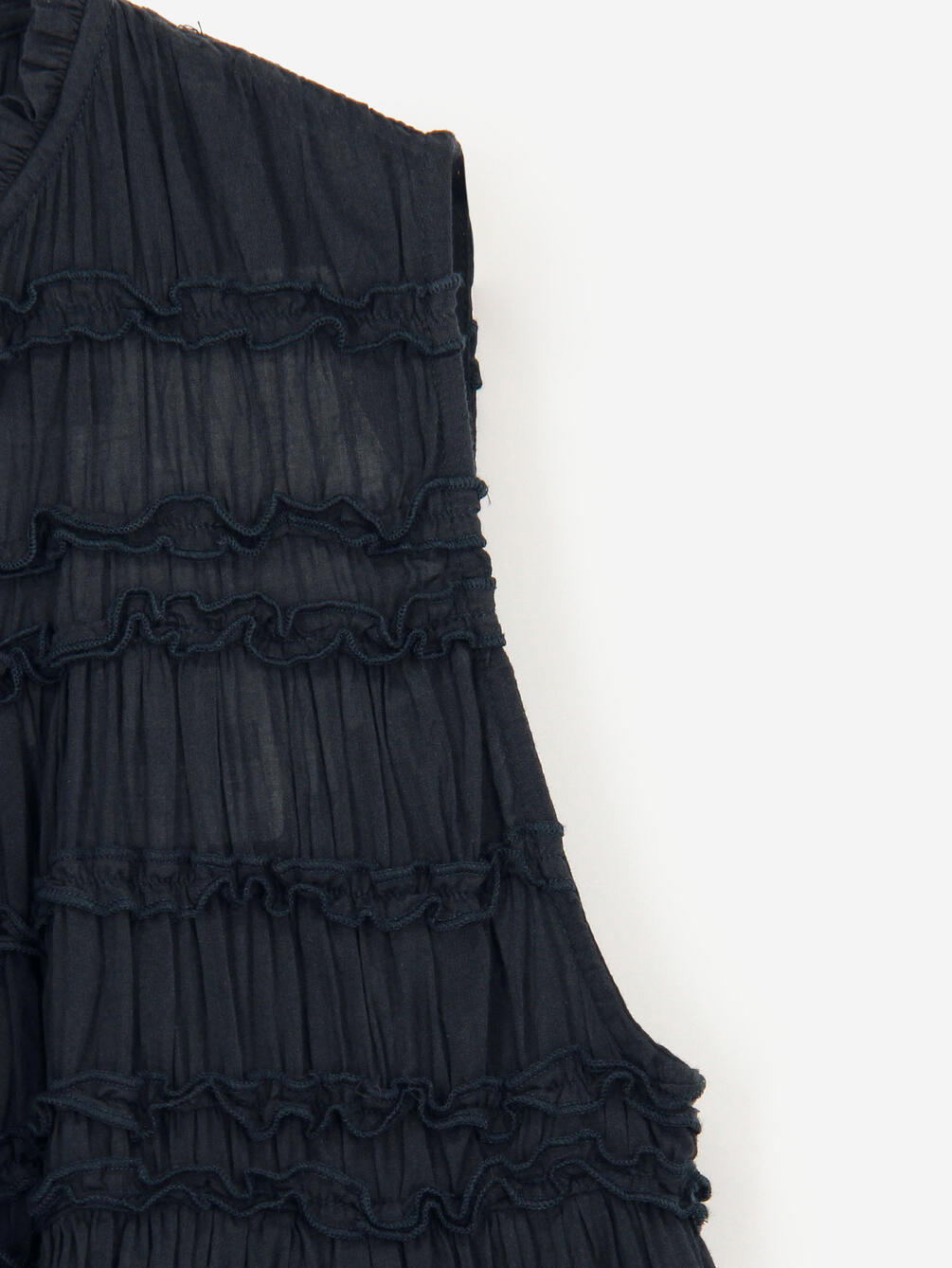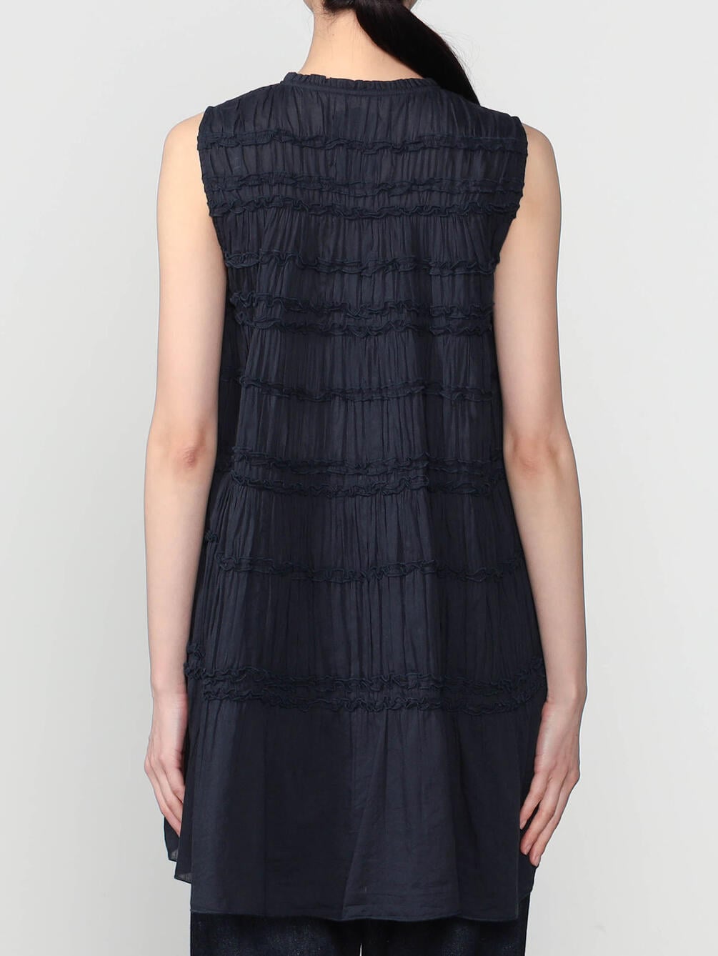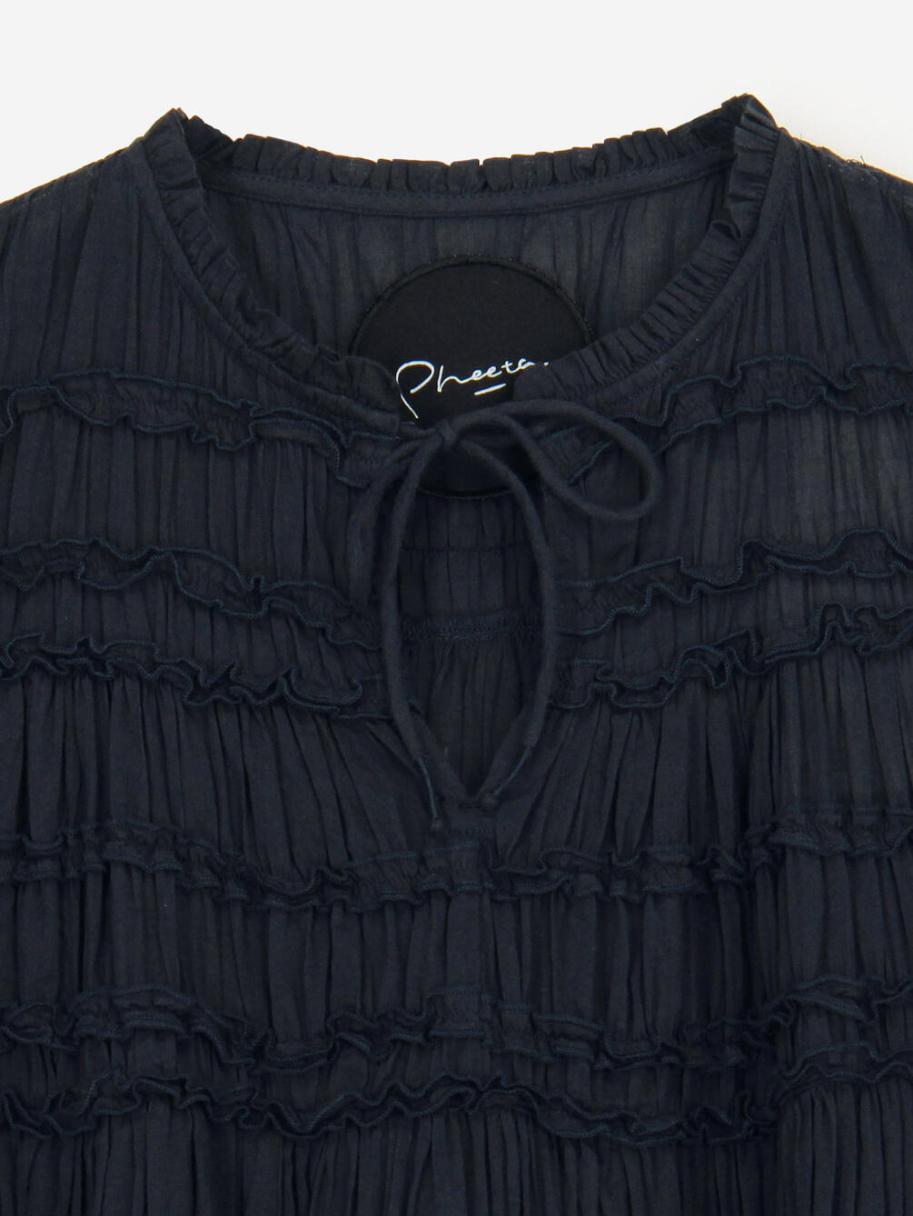 - 寄せ集めたギャザーにフリルを配したデザイン