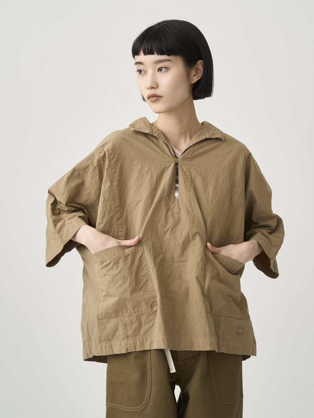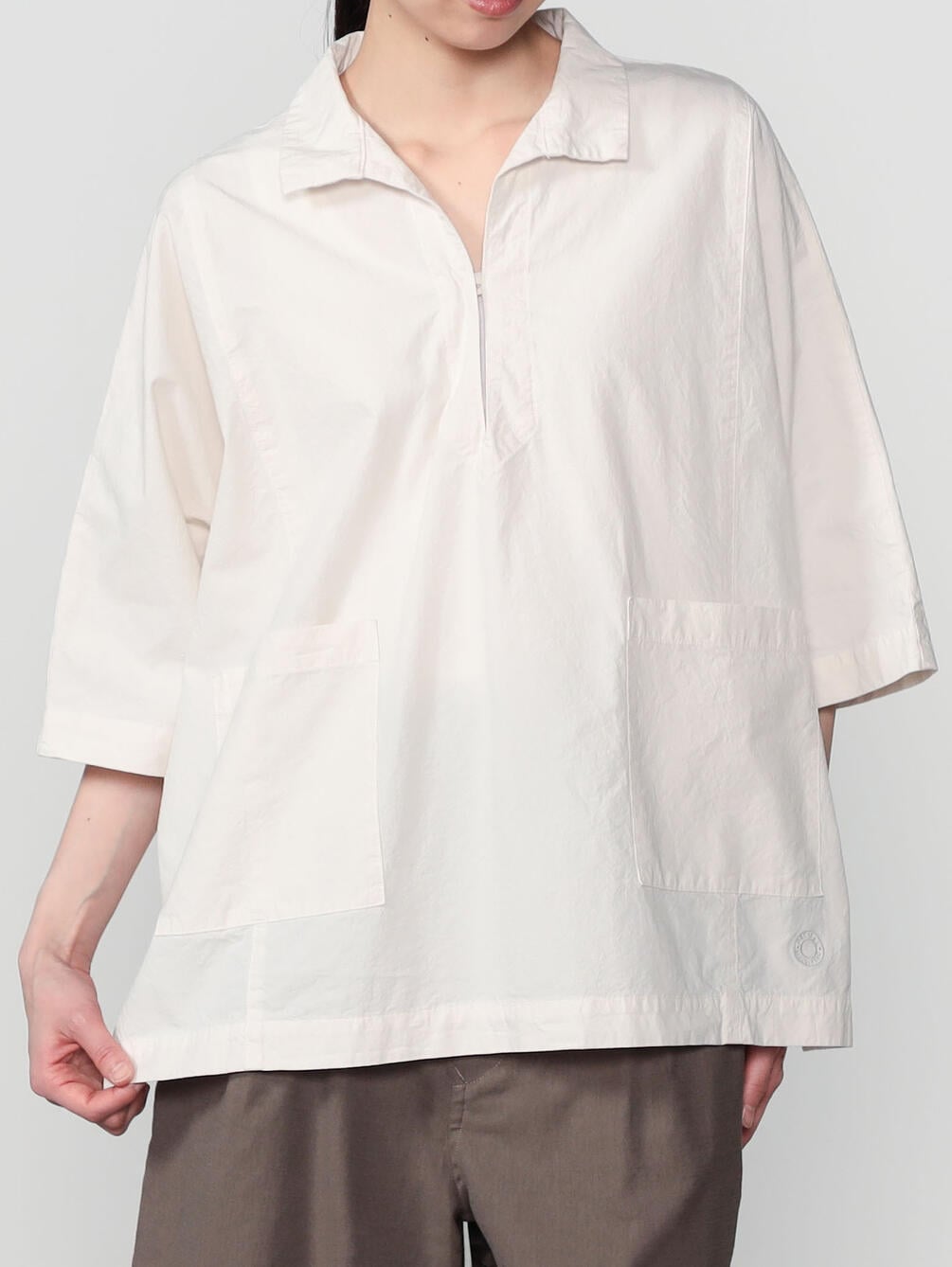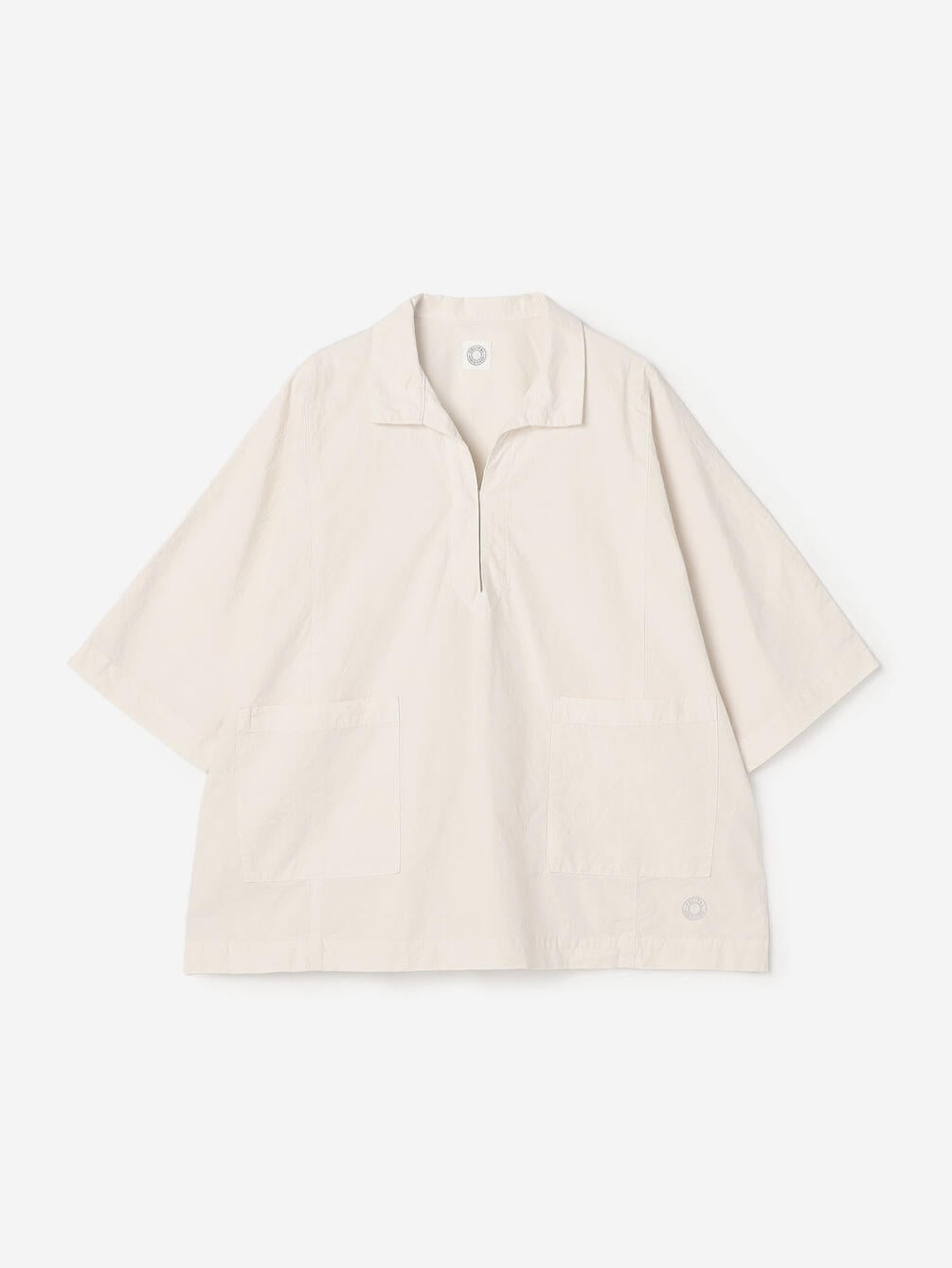 - 深めのスキッパーの半袖プルオーバーシャツ