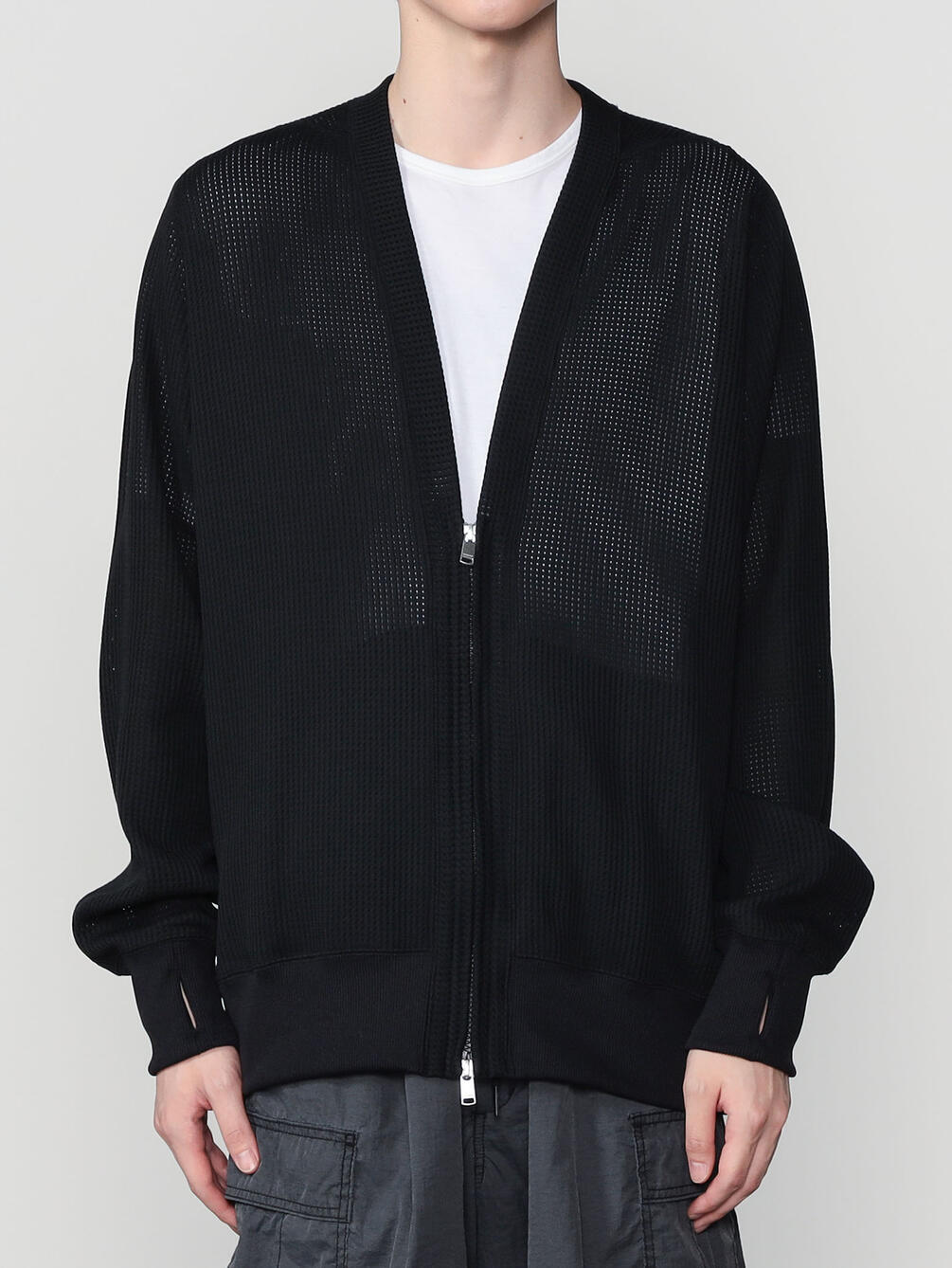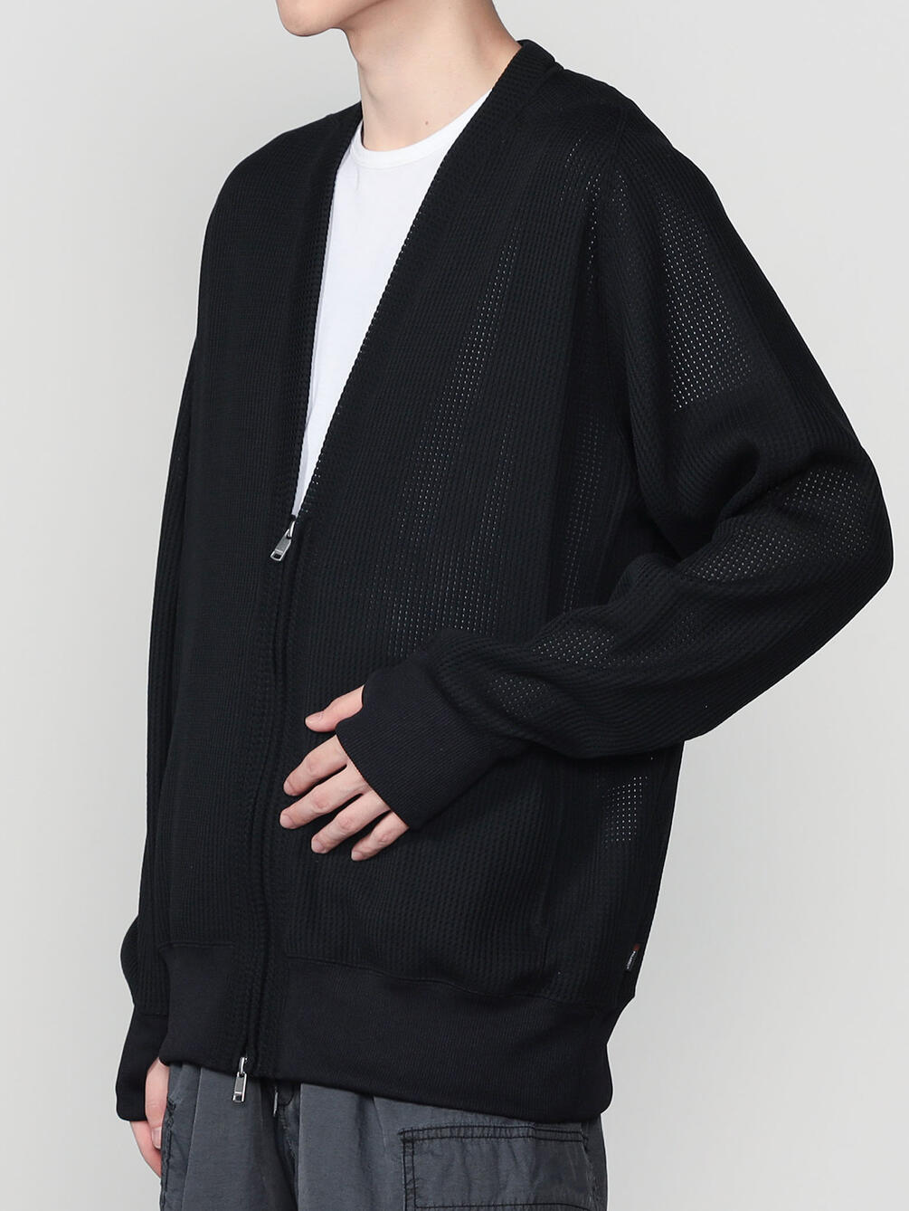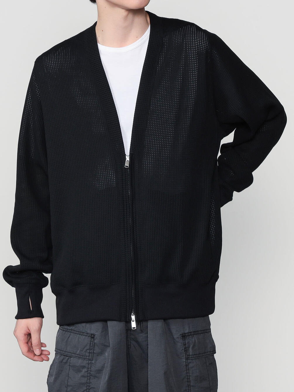 - Vネックのジップカーディガン